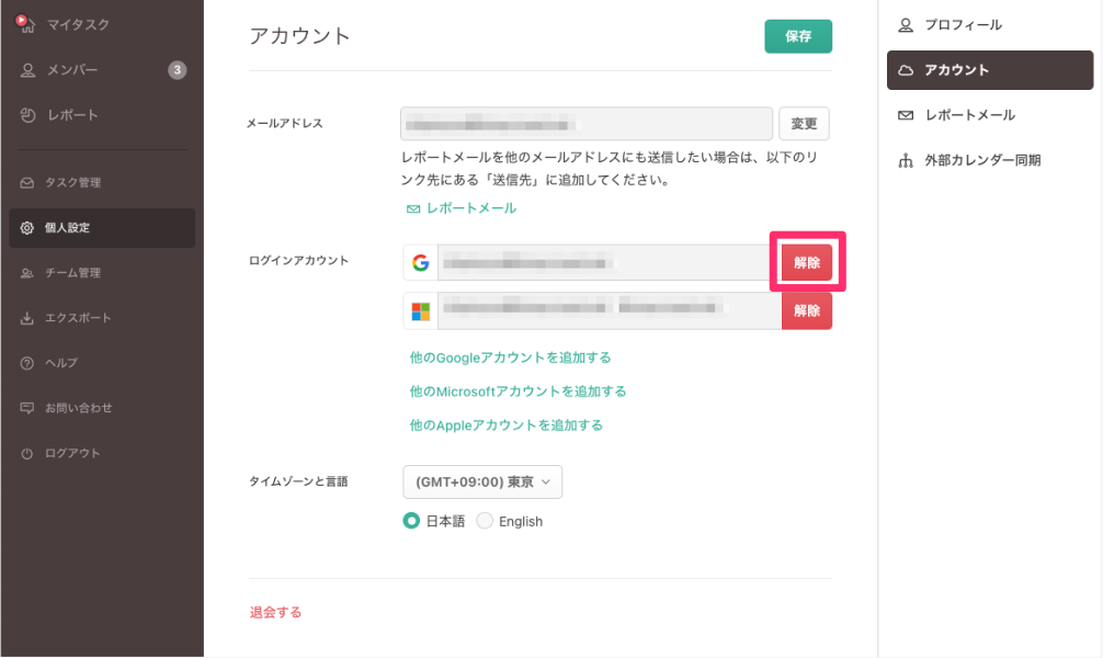 1.1でログインアカウントを追加した後、既存のログインアカウントを解除します。